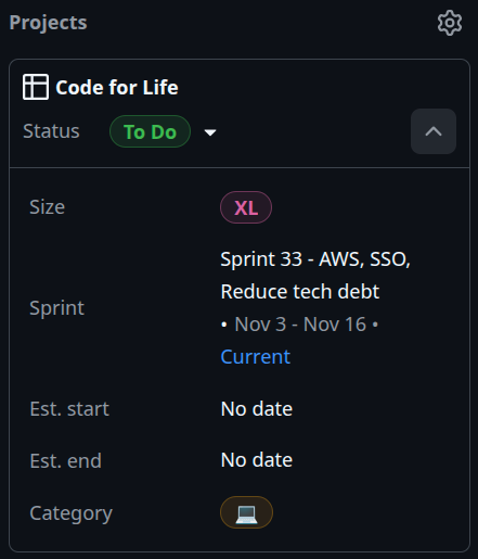 GitHub Projects supports creating [custom fields](https://docs.github.com/en/issues/planning-and-tracking-with-projects/understanding-fields) to track different values per issue. Below are the custom fields we define.