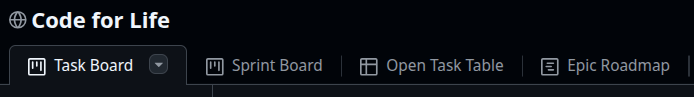 Code for Life is managed using [GitHub Issues](https://docs.github.com/en/issues/tracking-your-work-with-issues/learning-about-issues/about-issues) and [GitHub Projects](https://docs.github.com/en/issues/planning-and-tracking-with-projects/learning-about-projects/about-projects).