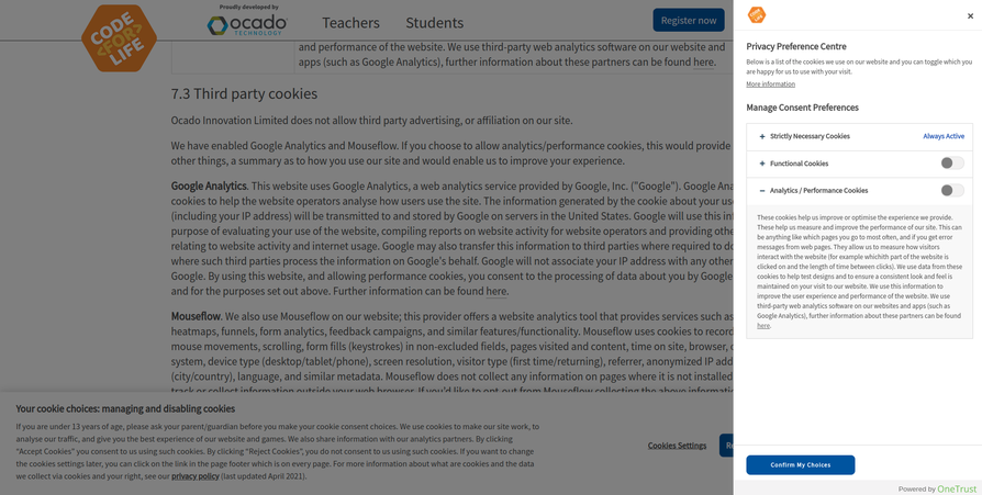 Added list of individual cookies to the privacy notice.
